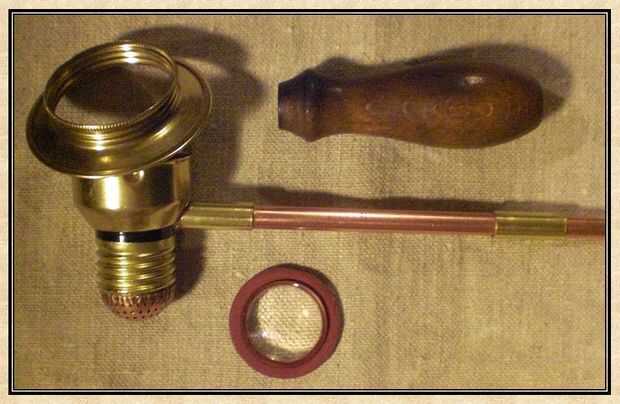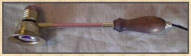El puntero es de algunos pequeños trozos de cobre y tubos de latón, la manivela de madera viene de una vieja máquina para picar carne y la parte superior es construir junto con una lámpara de edison toma una lupa y una mano anillo de fibra vulcanizada. Como el cable de electricidad utilicé un vintage original cada paquete de alambre cubierto varias veces con algodón como usted puede ver en la siguiente imagen.