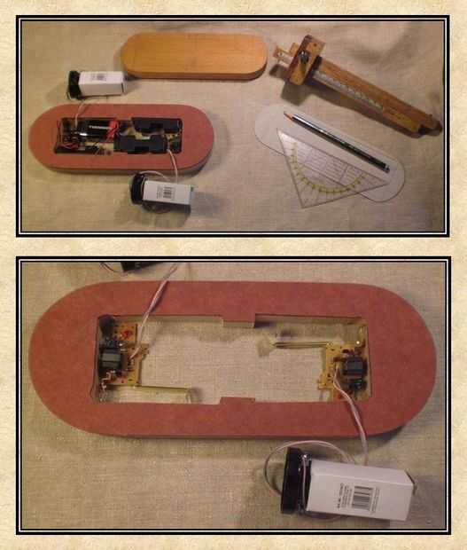 El panel de vivienda proviene de una resistencia cerámica muy vieja que se ha rota. El calcetín del generador mantiene todos los componentes electrónicos y está hecha de contrachapado con fibra vulcanizada en la parte superior.