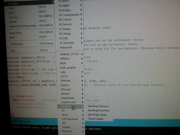 Ahora podrá ver la biblioteca y ejemplos en Seleccione Archivo > ejemplos > NewPing > bosquejo de NewPingexample.