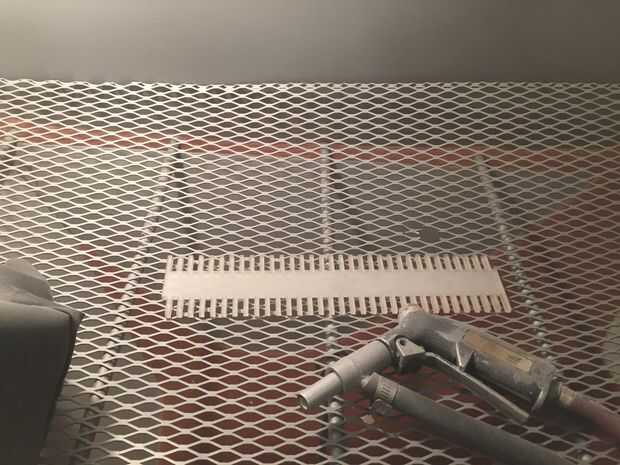 Después de cortar las piezas de acrílico, quité la película protectora y chorro de arena la superficie a 60 PSI, también se puede utilizar papel de lija de grado 800 para esto. Asegúrese de que ello para ambas partes.