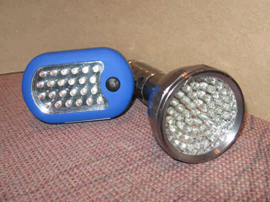 En uso normal, el LED de la linterna es alimentado continuamente con corriente de la batería DC. Una linterna de este tipo consiste en típicamente a los LEDs, uno o más resistores limitantes actuales y un interruptor para encender y apagar.