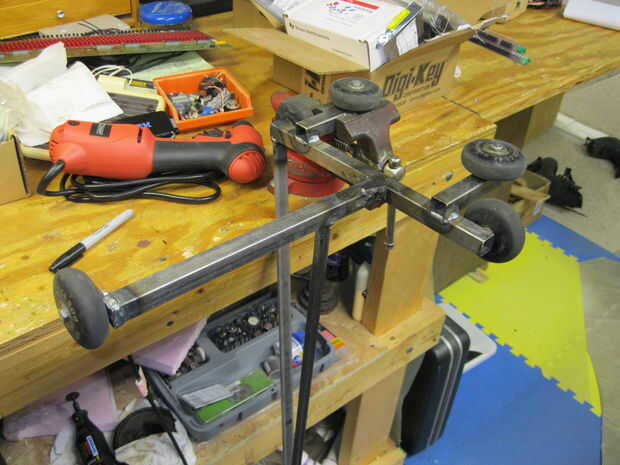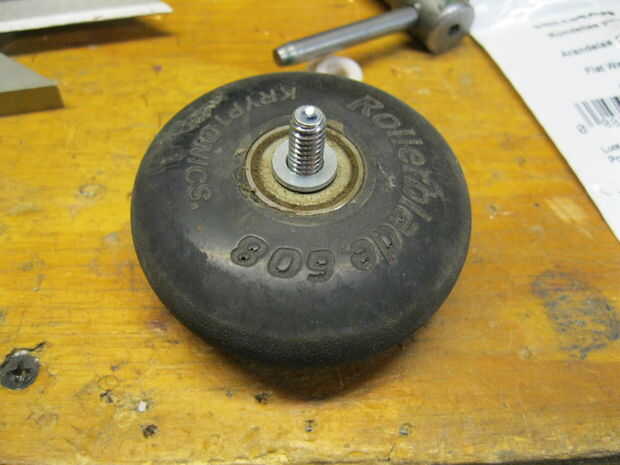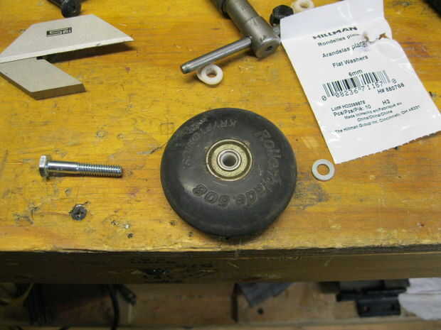 Atornille los ensamblajes de cinco rueda en las localizaciones de la armazón de la base como se muestra. Al apretar los pernos que desea firmemente bastante para no volver hacia fuera pero no tan apretado que atan para arriba los rodamientos en las ruedas. Si una rueda no gira suavemente o es muy dura, tratar de aflojar el perno de montaje.