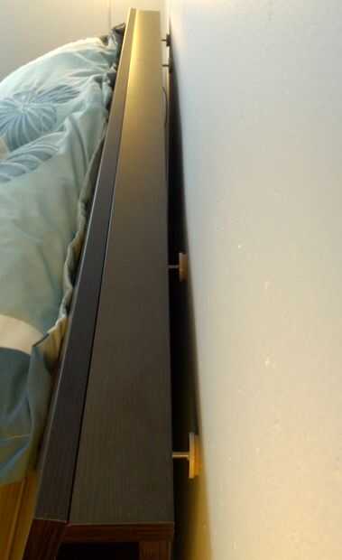 Si usted tiene pisos de madera usted puede encontrar que la cama ahora se desliza lejos de la pared completamente. Si este es el caso añadir almohadillas de goma antideslizante entre la cama y el piso debe mantener todo en su lugar.