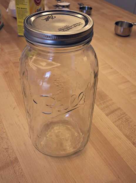1 recipiente que puede contener al menos 6 tazas de líquido. He usado un tarro de masón de 8 tazas (64 onzas).