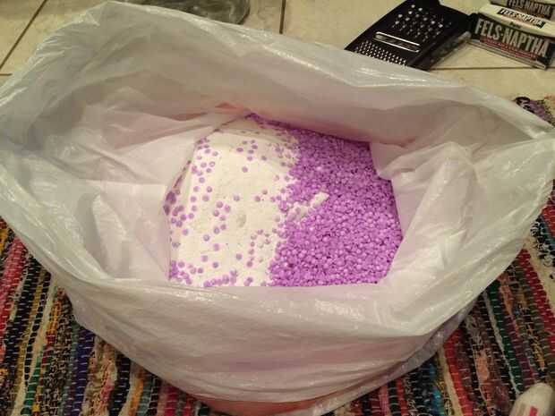 Vierta ambos contenedores de Downy UnStopables brazo y martillo Super Sosa, brazo y martillo de bicarbonato de sodio, 20 Mule Team Borax, Oxi Clean y en la bolsa de basura vacío. Esto tomará unos 5 minutos.