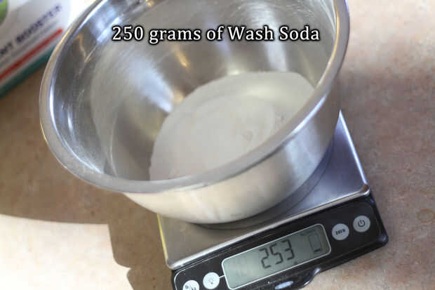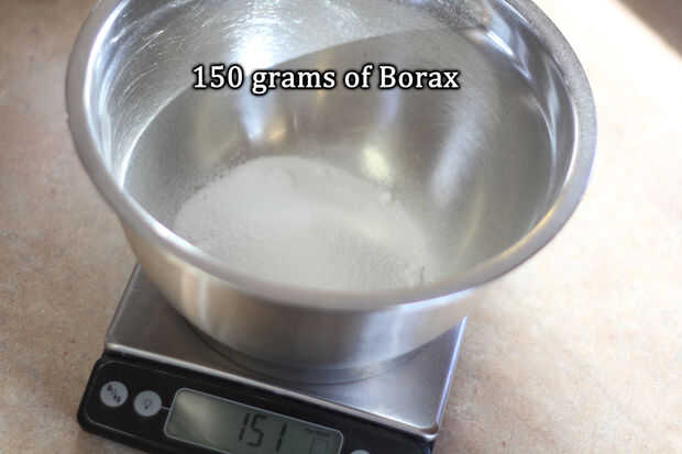 He utilizado 150 gr. de bórax, 150 gr. de jabón y 250g de sosa de lavar. Mezclarlo todo junto.