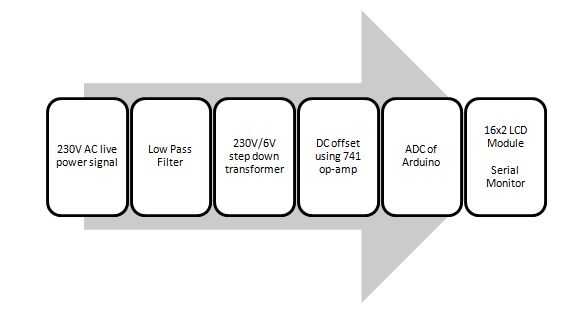 Así, el problema enfrentado aquí es muy claro que tenemos alguna manera de convertir el sistema de alimentación de 230 v de la fuente a 0-5V que Arduino puede analizar con éxito la onda senoidal proporcionada por la fuente. Otro obstáculo es que Arduino no puede leer señales negativas. Por lo tanto, teniendo en cuenta que tenemos que procesar la señal para calcular su frecuencia.