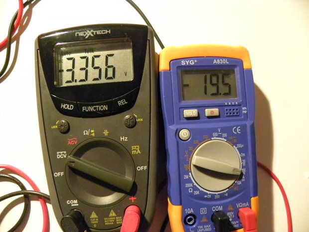 Medición de LED de alta potencia con > 350 mA de corriente directa puede ser un poco complicado porque cuando se calienta rápidamente, la tensión cae continuamente. Esto significa que la corriente será mayor a un voltaje determinado. Para medir el poder más elevado LED, siga el mismo procedimiento y establece la corriente. Rápidamente, mantenga el valor en ambos multímetros. Lo de if demasiado tarde, tienes que dejar que el LED de enfríe a temperatura ambiente antes de tomar la medida otra vez. Por esta razón, no se utilizan resistencias de limitación actuales al poderles. Deben tener una fuente de corriente constante.