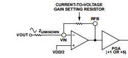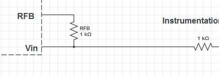 La resistencia de la RFB y el Resistor de ajuste de ganancia, se establece en el mismo valor que la resistencia de kΩ 1 principal fuera el amplificador de instrumentación. Esto significa que un aumento de 1 se consigue antes de toma en cuenta el aumento de la PGA.