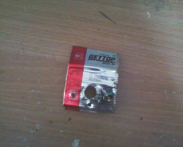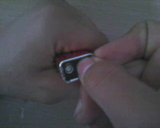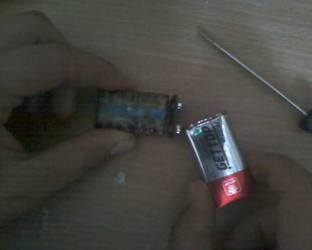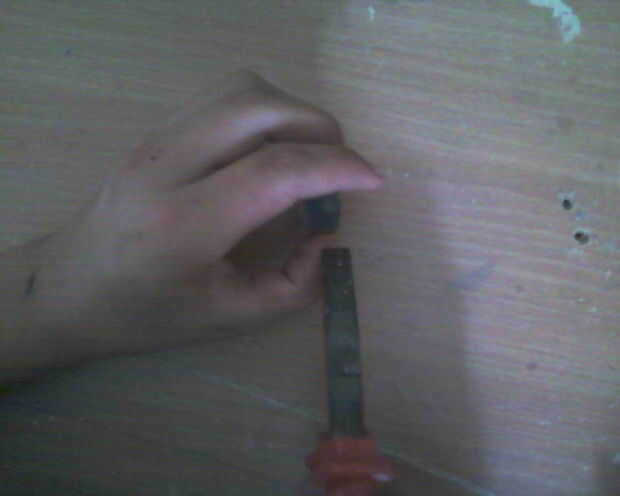 En primer lugar, utilizando la curva del destornillador el metal en el extremo de la batería para retirar su fondo y, por supuesto, quitar la parte inferior.
