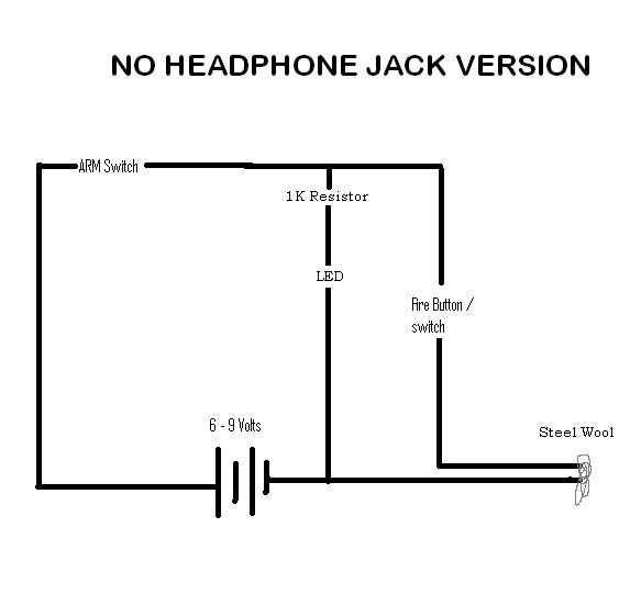 Cuando el botón de disparo interruptor es presionado la potencia se envía a través de la toma o sólo hilos de lana de acero. lana de acero es muy fina y se iluminará rojo calor cuando una corriente pasa a través de él.