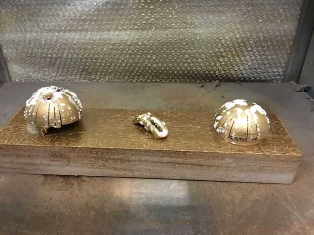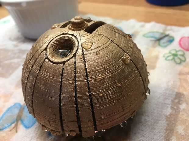 Para crear el efecto de la erosión en primer lugar pintaremos las partes de detonador principal con lo que será el óxido / corrosión color. Rocíe la sección superior, sección inferior y pieza principal deslizante en el oro / bronce. Hice una capa de latón metálico, entonces después de dejar que unas cuantas horas secar seguido esto para arriba con una capa de oro metálico, seguido de otra capa del latón. Se desea desea permitir que este 24 horas secar, la pintura debe estar 100% seco antes de la próxima etapa.