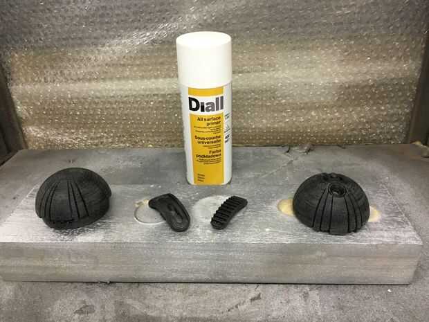 Lije levemente las partes impresas 3d con un papel de lija fino (P120) lisas antes de pintar, procurando para eliminar el polvo con un trapo pegajoso. Entonces imprimar las piezas usando una cartilla superficial e izquierda todos secar durante unas horas. La pieza de agarre diapositiva superior interruptor entonces se pinta en negro mate.