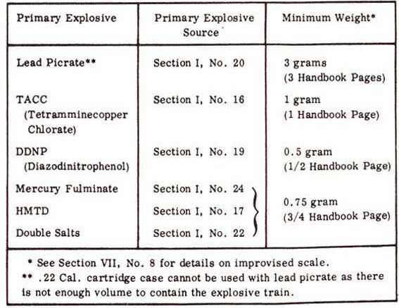 Cargar el explosivo primario en el caso de cartucho. Utilice la siguiente tabla para la cantidad apropiada. Una página del manual es un pedazo de papel.