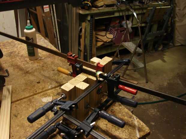 Whoo Hoo! el jefe quiere la unidad. vamos a terminar esto. Así que comenzamos por cortar el resto de 2 x 2 en 12 pedazos incluso para las piernas y pegar 3 de ellos en forma de "L". por la colocación cuidadosa de mis pinzas y pegamento, pude pegar los 4 al mismo tiempo.