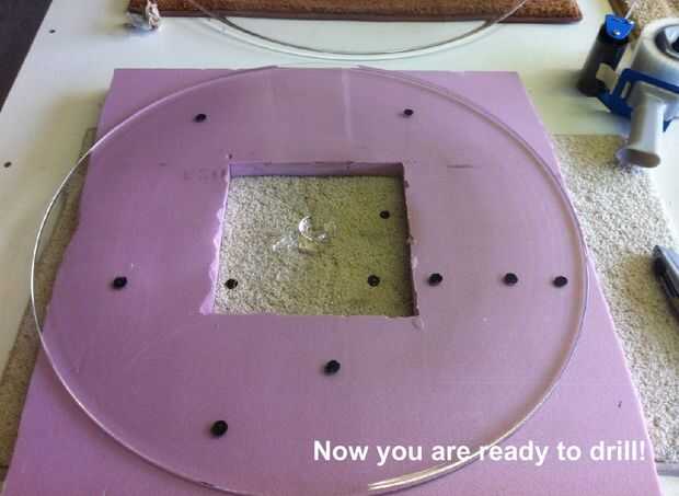 FYI: No perforar los agujeros en vidrio es la broca estándar! Utilice una broca de taladro de diamante.