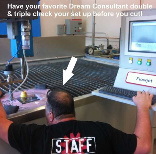 Colocar el cristal en el chorro de agua es muy importante! Esto variará dependiendo de su archivo, siempre es conveniente tener sueño Consultor dobles/triples comprobar tu set antes de cortar.