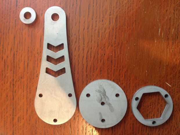 estas donde corte utilizando el chorro de agua en lugar de láser porque el tornillo de los lugares más pequeños que el grosor del material, por algunos razón su salida de la capacidad de corte por láser. El material es acero inoxidable 304 de 3/16 espesor. Yo debo has aleación, acero inoxidable, es un dolor para polaco y su bonito duro en pedacitos de taladro! pero una vez que se vea bonito, siempre permanecerá así, sin necesidad de limpiar o pintar.