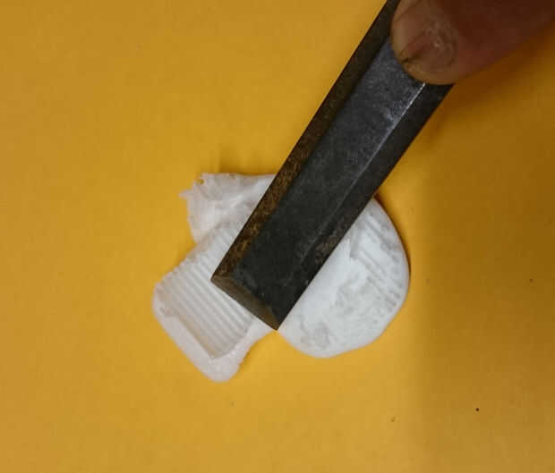 Para quitar la impresión de la placa de impresión * aprovecho el buen viejo cincel de carpintero. Esto es definitivamente la mejor herramienta para hacerlo. el cincel es una buena herramienta para quitar los soportes una limpia la impresión también! Asegúrese de que el cincel está dispuesto, en caso contrario no divertirse con él.