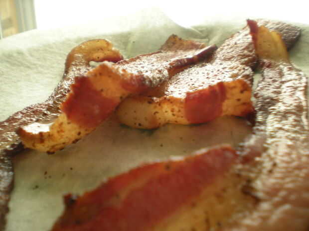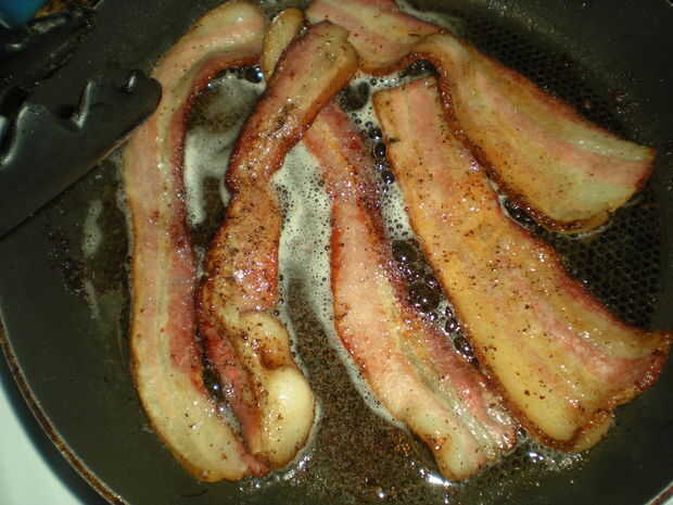 • Cocinar el tocino en una sartén a fuego medio hasta que esté crujiente.