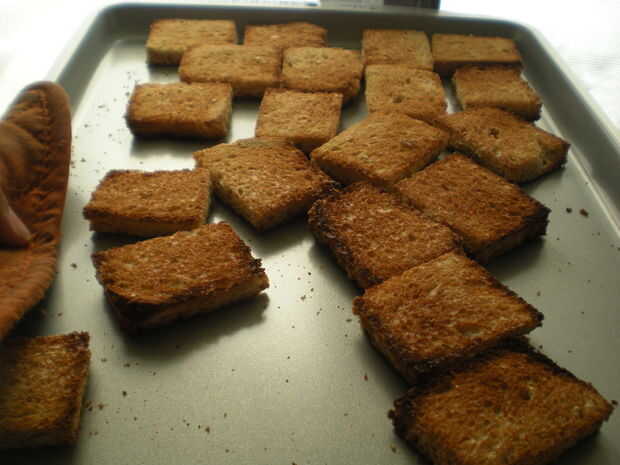 • Dorar cada lado del pan en una bandeja en el horno.