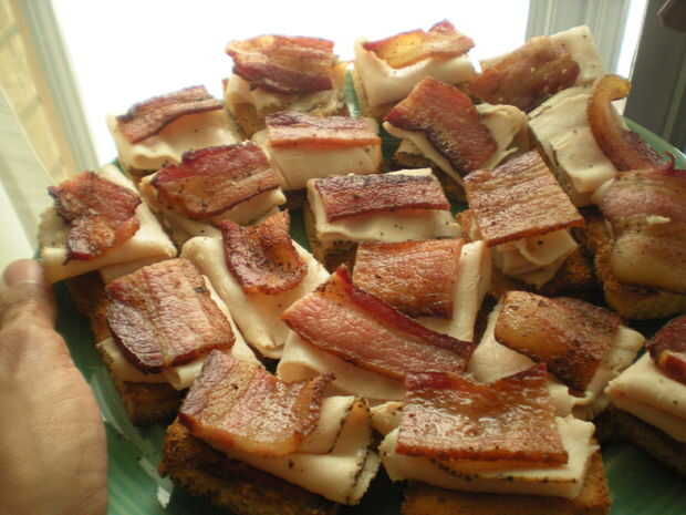 • Coloque el cuarto pedazo de tocino en la parte superior de cada sammie.
