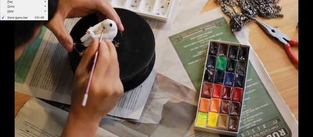 Hice a caballo por el alambre que forma a lo largo de un tubo. Añadir más luces y colores.