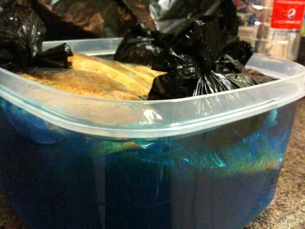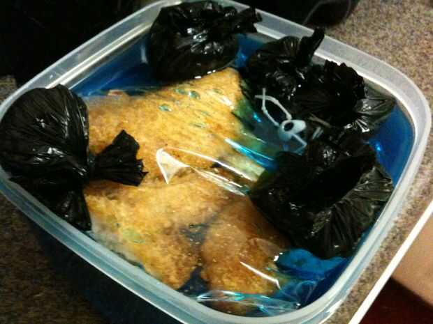 EL truco es... tienes que darle la vuelta. Lo pongo dentro de una bandeja de pastel, boca abajo en la nevera para dejar que se enfríe durante la noche. Si se colocan, normalmente, la comida flotará en la parte superior. Quieres que todo en la parte inferior, por lo que necesita colocar el contenedor, primero la tapa y la esperanza de que sus estancias cosas como dispuestos como sea posible. Si todo va bien, usted puede darle la vuelta que al día siguiente y todo estará donde tiene que ser para conseguir el efecto bajo el agua!