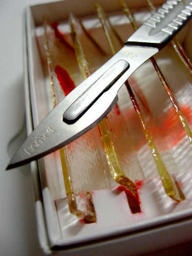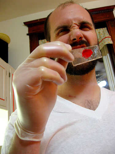 Cuando vi la receta de Piruletas de Martha Stewart , pensé que era una buena idea pero aburrido! He intentado ideas sobre rellenos más horripilantes pero la idea de lollipop era simplemente tan aburrida como antes. Entonces comencé a pensar de lo que es realmente aterrador. Asesinos en serie! Inmediatamente pensé en Dexter y sus diapositivas de sangre.