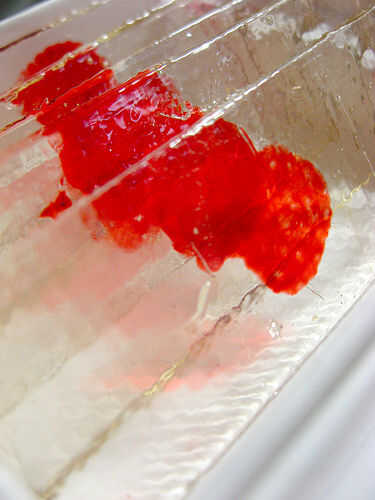 Para este años tratar el horripilante Halloween, he decidido crear una vitrina de trofeos de mi. Aquí está mi receta y direcciones para Dexter sangre diapositiva mamones. Son super fáciles de hacer y barato!