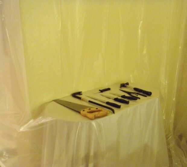 Utilizar una mesa pequeña mesa/final/mesa de centro de lo que tienes, para hacer la tabla de Dexter presenta sus armas a. Organizar cuidadosamente como sea posible. Utilizar diferentes cuchillos (preferiblemente falso!) ya que es lo que Dexter usa para matar con un martillo para el asesino de la Trinidad, un serrucho o hacha para despedazar los cuerpos y así sucesivamente.