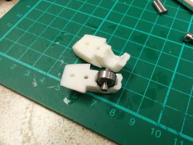 1. Tome las dos mitades de la yema del dedo y coloque uno de los rodamientos de 12mm clavija en la ranura de una de las mitades.