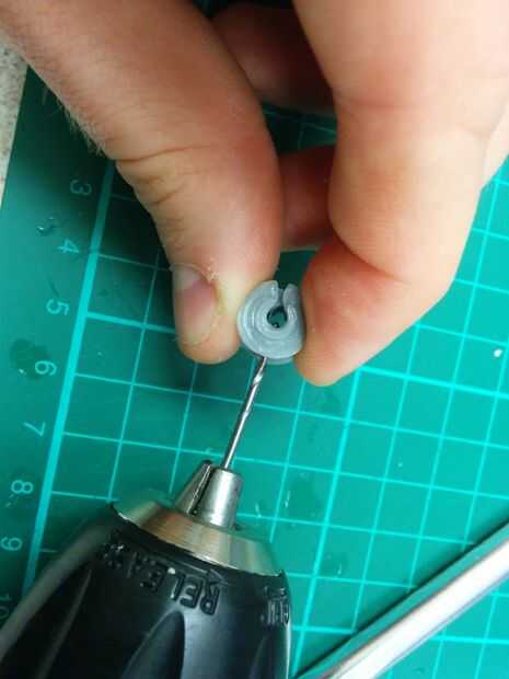2. Perfore el orificio en la bobina. Esto es para el tornillo sin cabeza. Yo utilice una broca de 1,5 mm y moverse un poco para que el prisionero debe fijarse en el agujero. Tal vez prefiera usar una broca de 2mm.