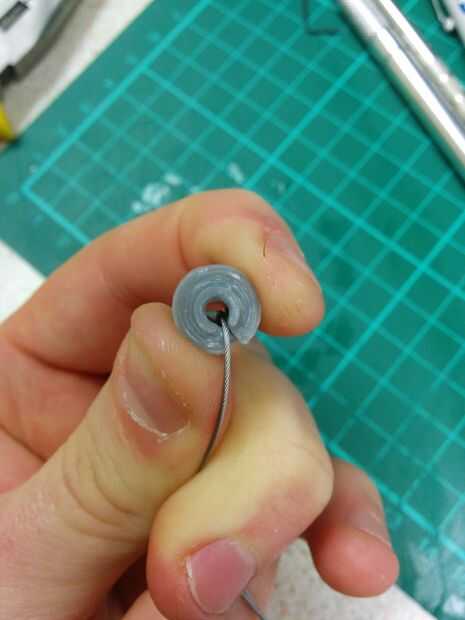 6. Pase el cable a través del centro de la bobina. Hay una ranura que debe sentarse en el lado opuesto al tornillo sin cabeza. Debe enroscar el cable para que la bobina está a medio camino a lo largo del cable.