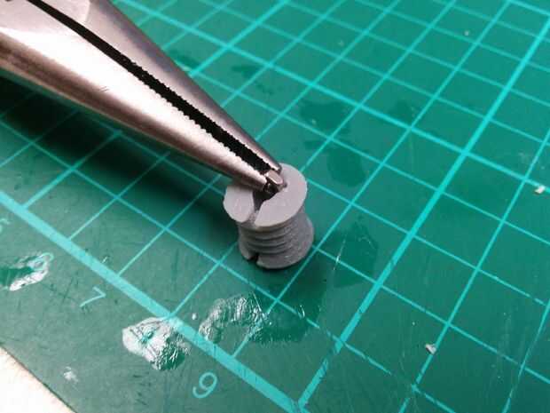 3. usando las pinzas, inserte los M2 de la tuerca en el carrete y empuje completamente hacia abajo.