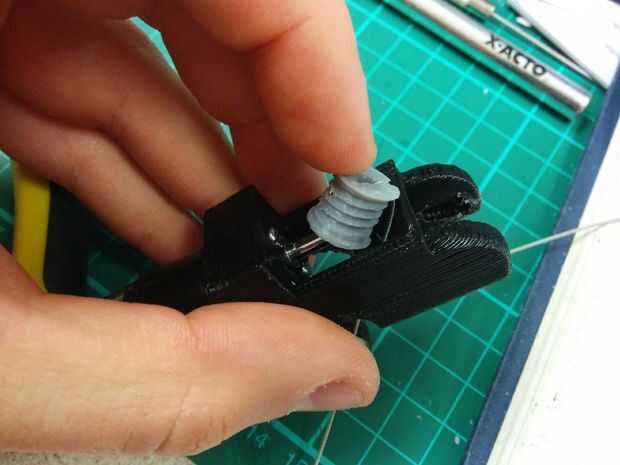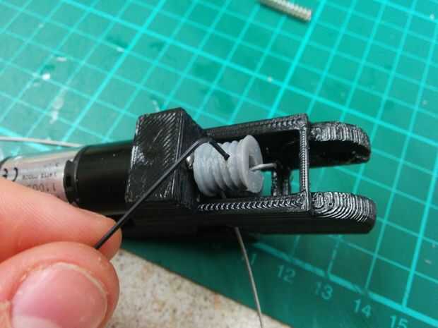 8. Empuje el carrete en el eje (esto necesita un poco de moverse y doblar pero debe ir de). En un extremo de la bobina tiene un collar, ello va más cercana al motor.