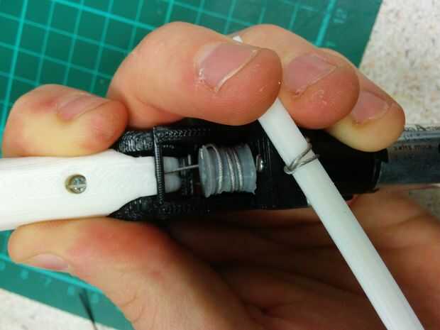 7. Tire los tendones enseñados otra vez y asegúrese de que todavía son heridas correctamente en el carrete.