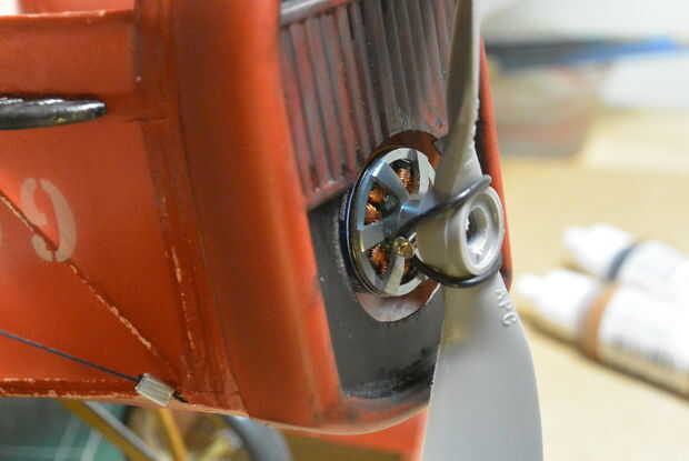 Como se puede ver que la chimenea tiene un agujero grande en él, es por lo que el motor puede pegar un poco. Yo no soy totalmente feliz con esto pero el motor sin escobillas que estoy usando no tiene un eje largo que sale del motor. Las instrucciones que vienen con el motor dice que se puede invertir el eje, cuando miré en internet de que vi un montón personas doblando, haciendo inútil el motor.