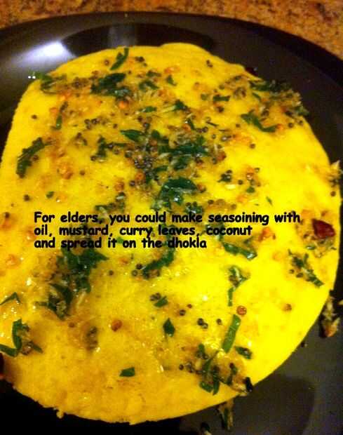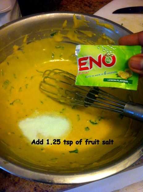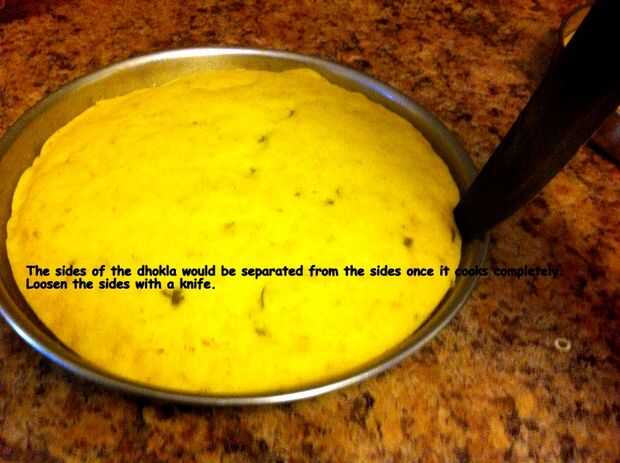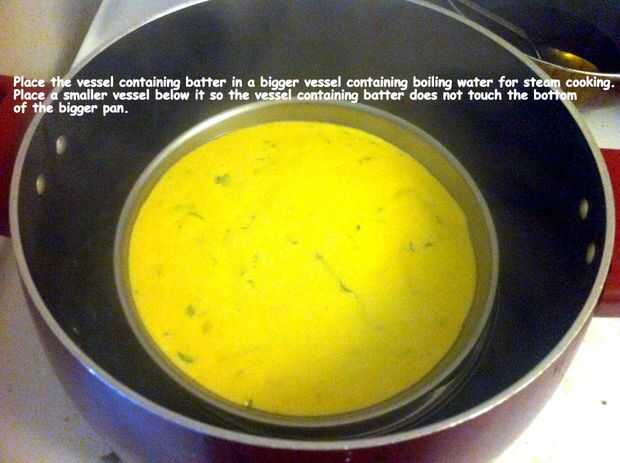 Dhokla o garbanzos salados al vapor harina Snack mordeduras (2 / 2 paso)