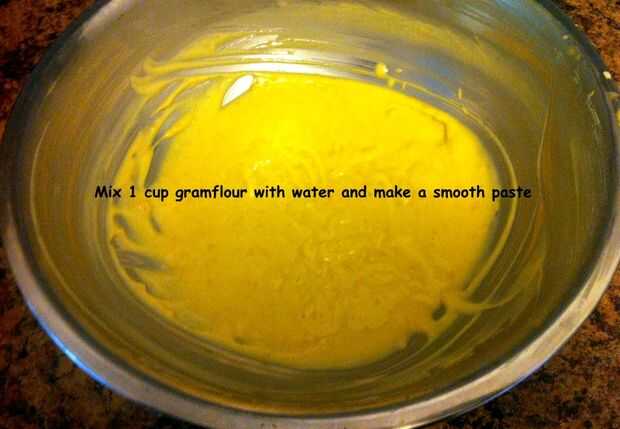 1. Mezcla Gramflour / harina de garbanzos con agua y hacer una pasta suave