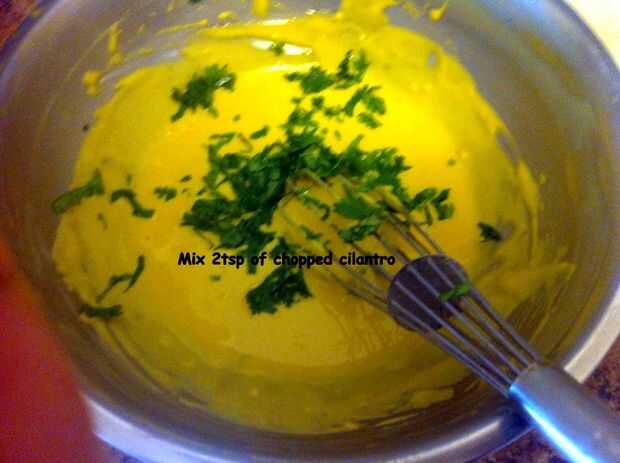 3. Añadir el jengibre, la cúrcuma, los chiles verdes, Cilantro y sal y mezcla.