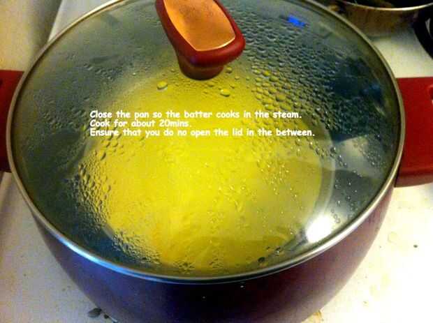 15. Nota: Si no tienes un recipiente de vapor apropiado, entonces podemos crear nuestros propios. Por eso, tomar una olla grande y hierva el agua, que cubre cerca de 3 pulgadas desde la parte inferior de la olla. Dentro de la olla grande que contenga agua hirviendo, coloque un vaso más pequeño de sobre una altura mínima de 3 pulgadas cuando ponemos la placa que contiene la masa encima de esta placa más pequeña, no se ahogan en el agua abajo. La masa debe cocer por steam solo mas que se pondrá blanda.