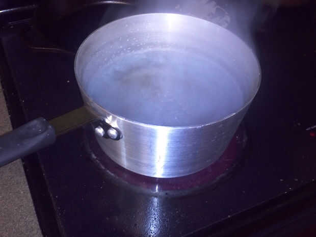 Combinar la sal con 1/3 de galón de agua y hervir.