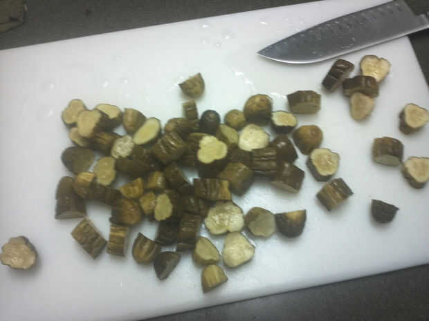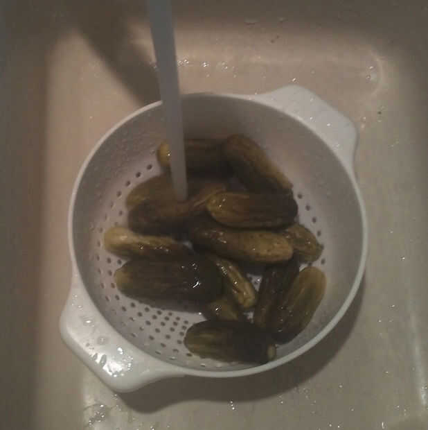 Si vas a cortar el pepino, ahora es cuando haces eso. Puede cortarlas longitudinalmente o en trozos. Si va a dejar todo, les pinchan todo con un pincho o tenedor para que las posteriores soluciones absorben con más facilidad. Seguir el siguiente paso para algunos pensamientos si va a salir todo los encurtidos.