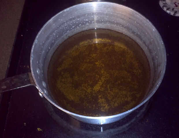 Combinar el azúcar, vinagre, canela y aceites de clavo de olor y semillas de apio. Poner esta mezcla a hervir.