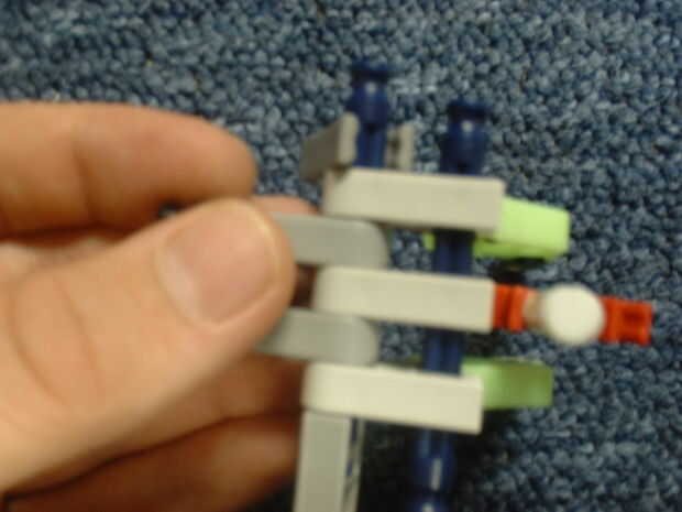 una vez que hayas hecho esto, usted puede adjuntar al cuerpo utilizando las dos piezas gris!