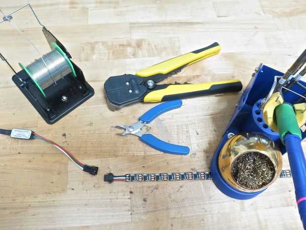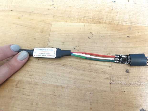 Luego cortar los cables de salida de mi chip de controlador led de neón fresco y había soldado a la tira de led. Asegurándose de que coincide con: