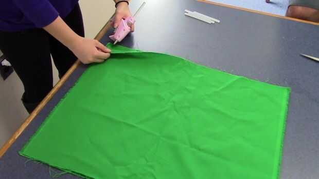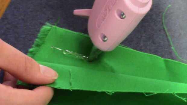 Nota: Asegúrese de empezar a pegar alrededor de una pulgada lejos del borde de la tela, esto hará que el pegamento no se verá en el producto final
