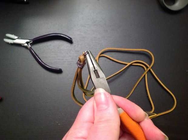 Alicate presionar firmemente los extremos del cable en el cuero para que no pican.