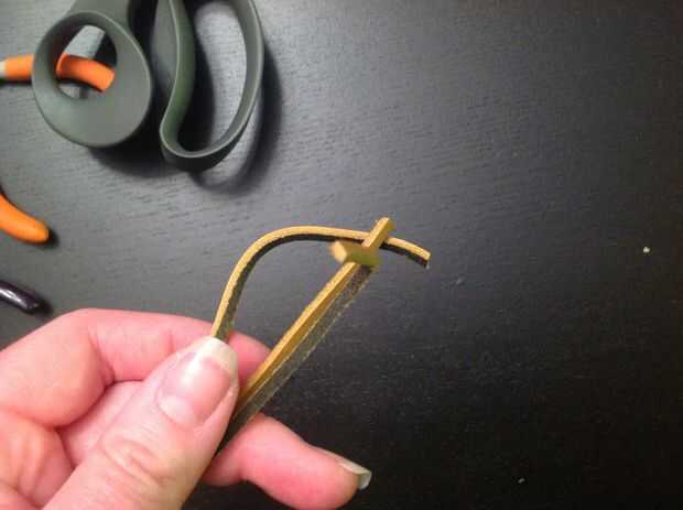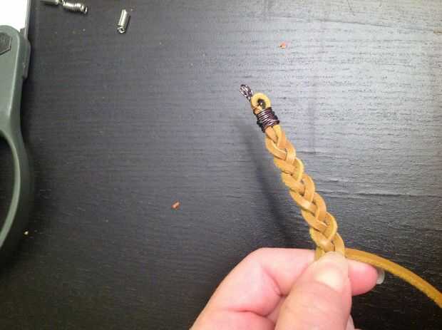 Corte el otro extremo de su cordón (al final no enrollado con alambre) para tener tres puntas para trabajar con. Iniciar una trenza simple. Hacer la trenza muy apretada. Cuando la trenza es aproximadamente de 2" de largo, pasar al siguiente paso.